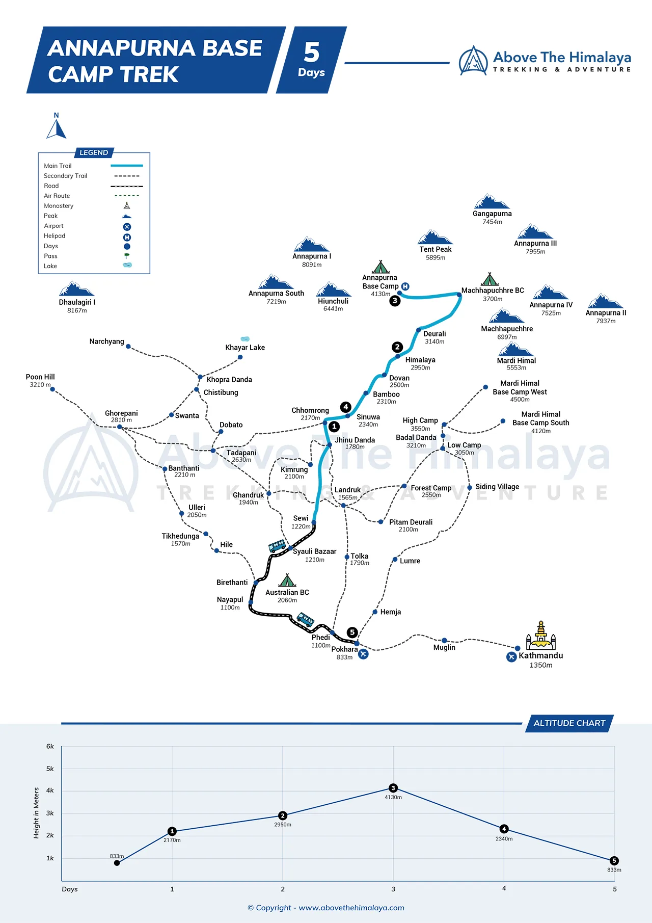Itinerary of Annapurna Base Camp Trek 5 Days