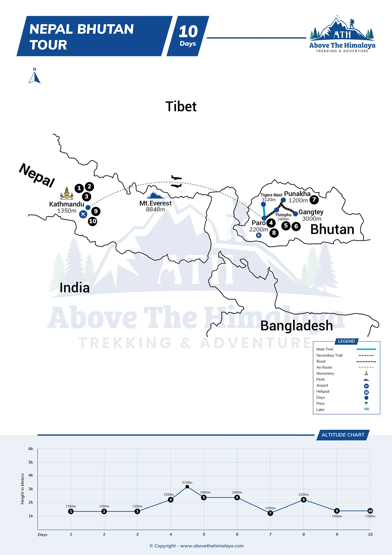 Reiseroute der Nepal-Bhutan-Tour – 10 Tage