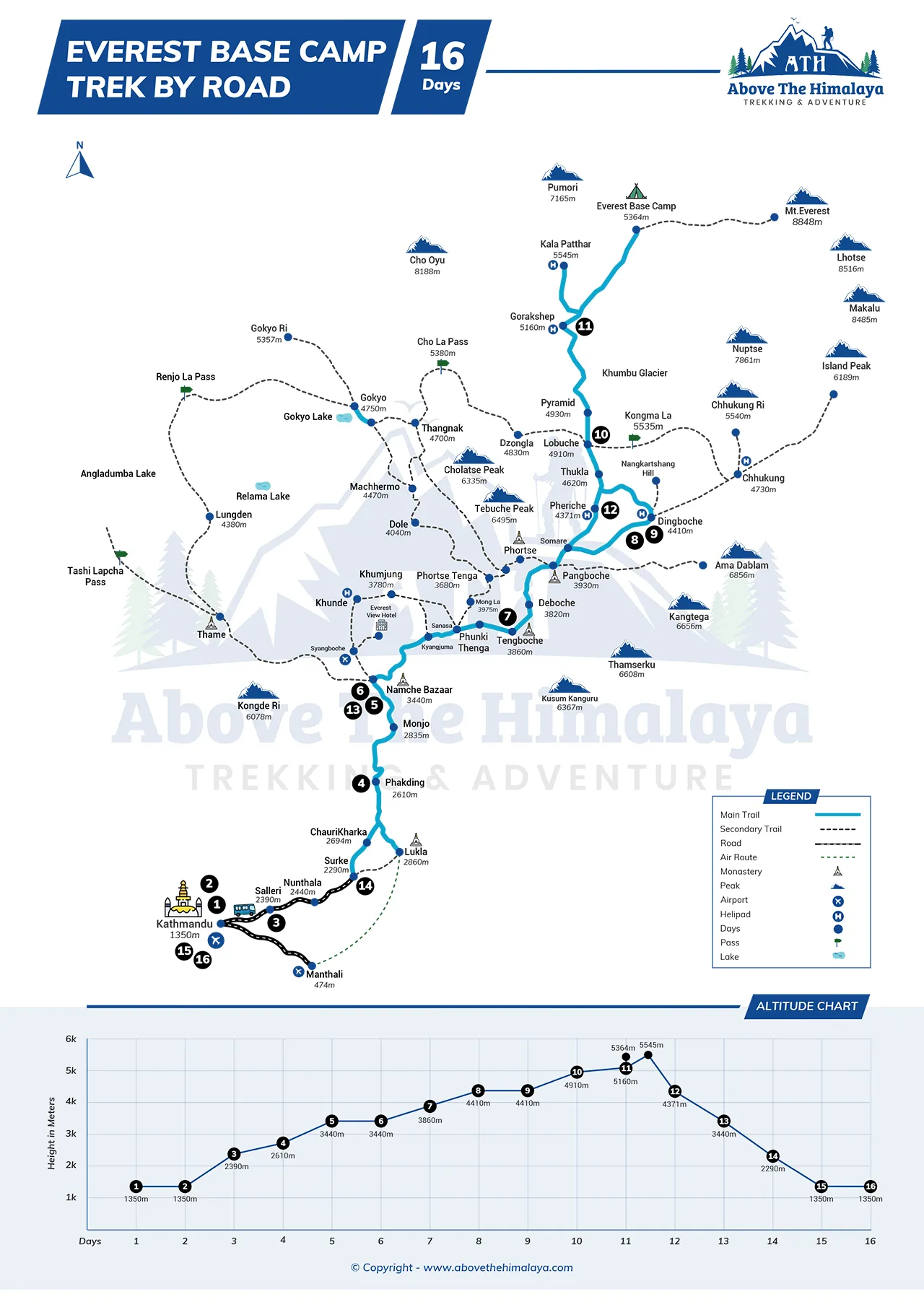 We can trek for 14 days to Everest base camp with out flight. Now, it is easy to reach Surke by vehicle after crossing 64 km from the district headquarters, Salleri. We can trek from Kathmandu to Kathmandu in 14 to 16 days. With your international flight, we can make it a 16- 17 day itinerary. However, we do not recommend this route for a rainy time from Mid-June to the End of early October; due to rain, the road can be blocked so that you can travel that route in the dry season after mid-October,