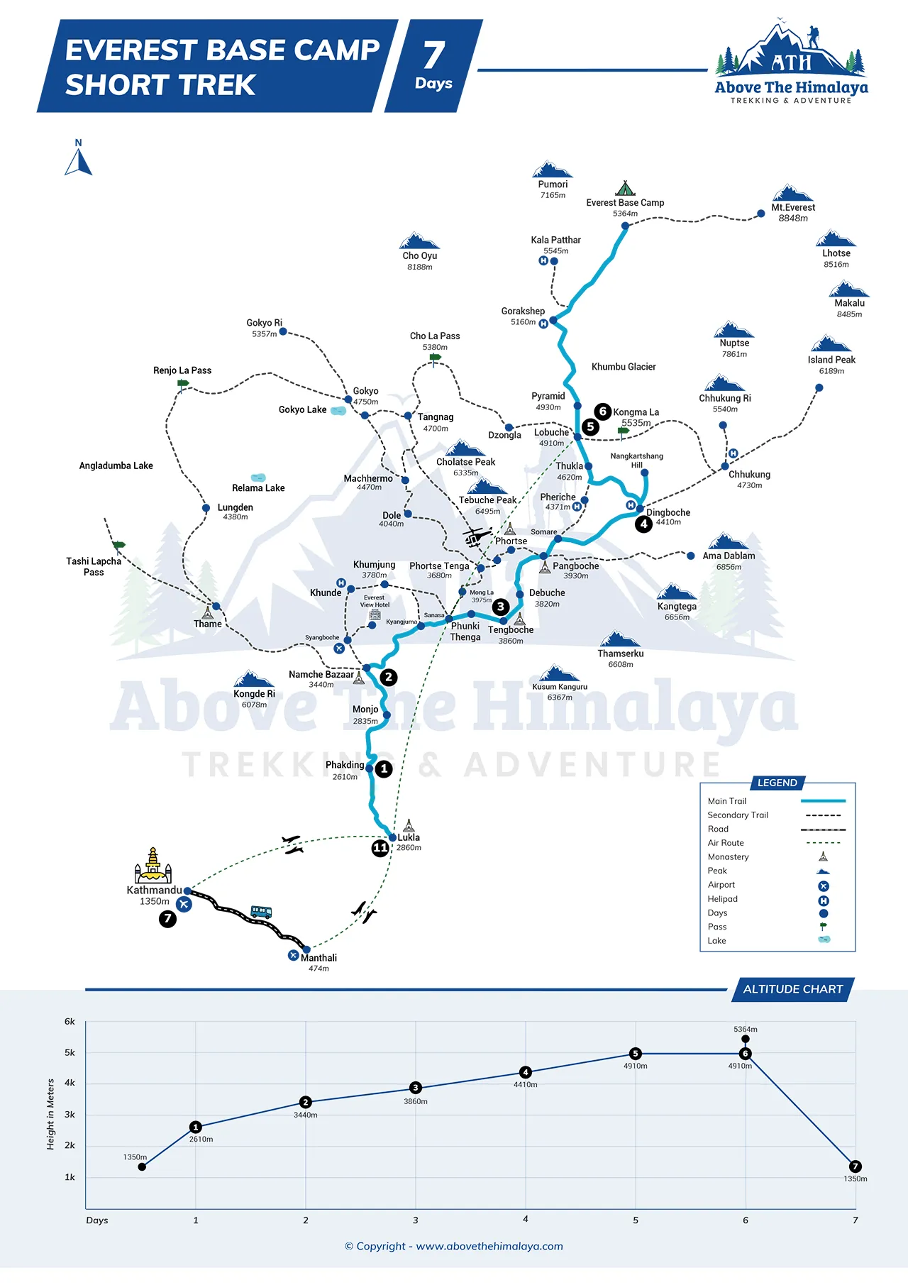 Everest base camp short trek 7 days Distance and its altitude in detail