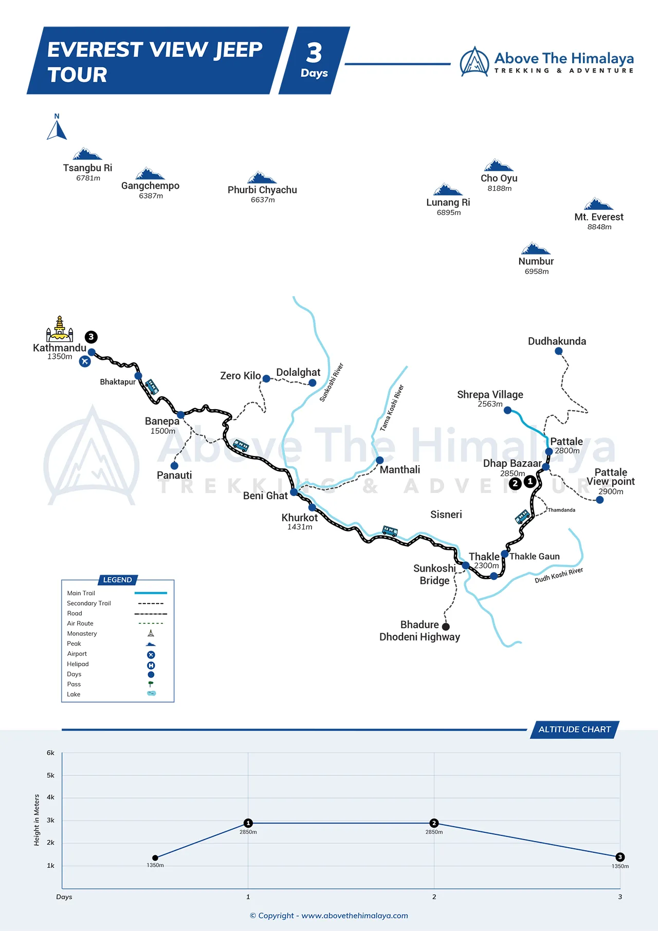 Because the Everest View Jeep Tour only reaches about 2,900 meters and includes a gradual ascent, serious altitude sickness is unlikely. However, we still caution travelers to watch for mild symptoms. On waking day 2 and 3, drink extra water and take the hikes at your own pace. Common symptoms at this height include a headache or slight breathlessness, but they usually go away after a short rest.