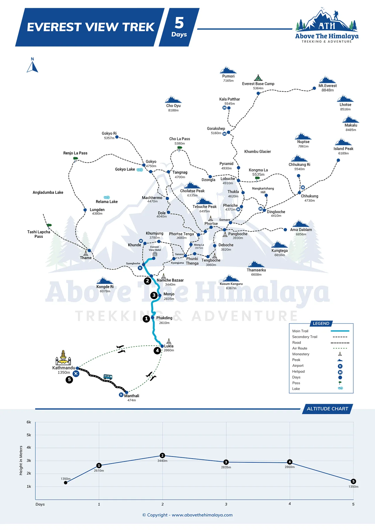 Trekking to Everest View with a guide is normally secure for all trekkers. By following a slow pace along with hydration at each stage of the trek a person can manage the risks of altitude sickness.