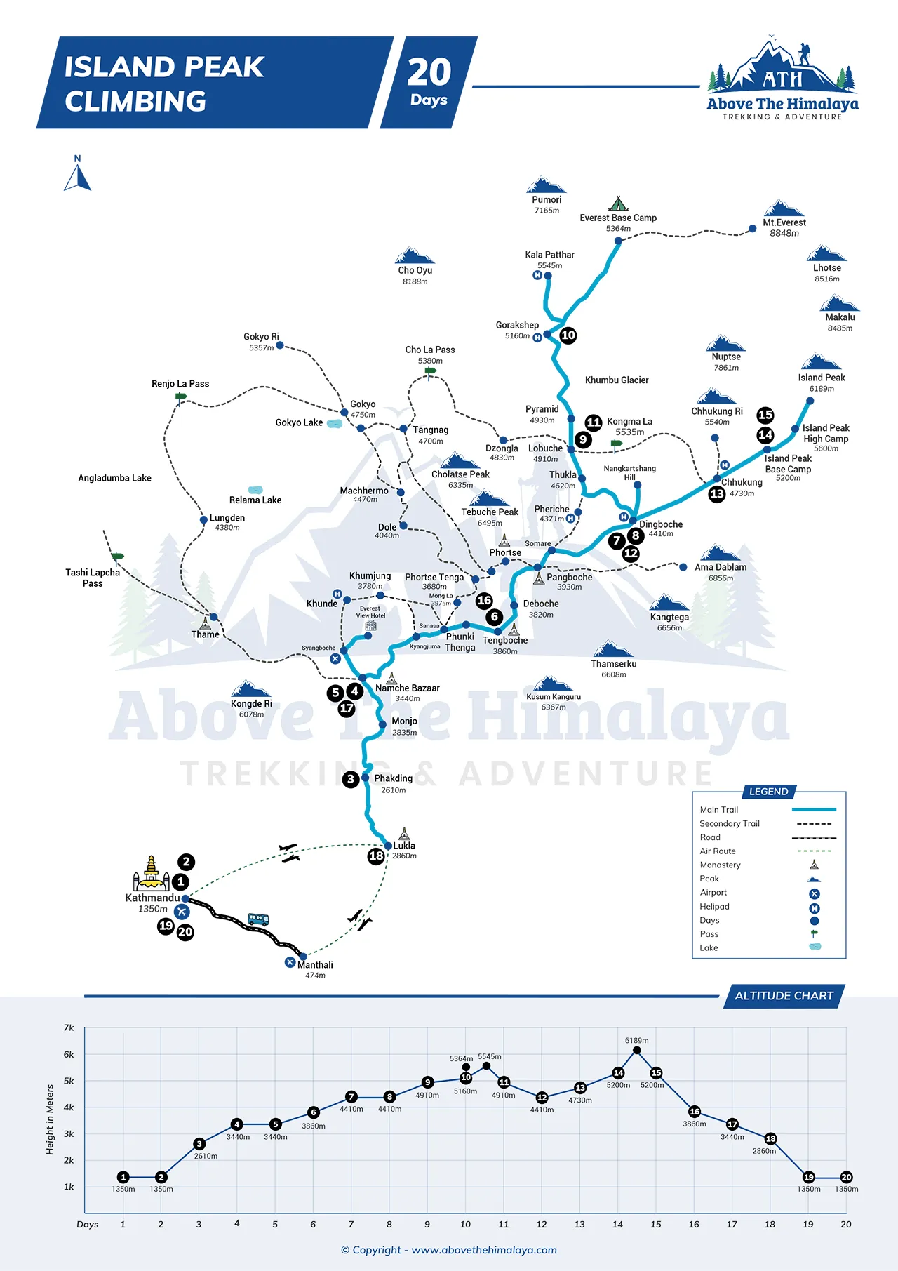 - The trail and everything else about the island peak climbing trek is a perfect introduction to mountaineering and Himalayan trekking in Nepal.
