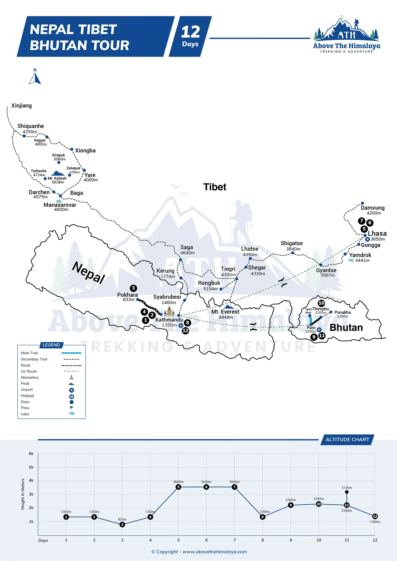 There is no problem with altitude sickness for your Nepal Tibet Bhutan tour, and Bhutan is also okay. But, while touring in Tibet, you will reach a height of 4,000 m, so there is a chance of altitude sickness. You can prepare the trips before arrival. Do some little workouts, such as jogging, yoga, or light. Doing them for a minimum of a month before the trip will be helpful.