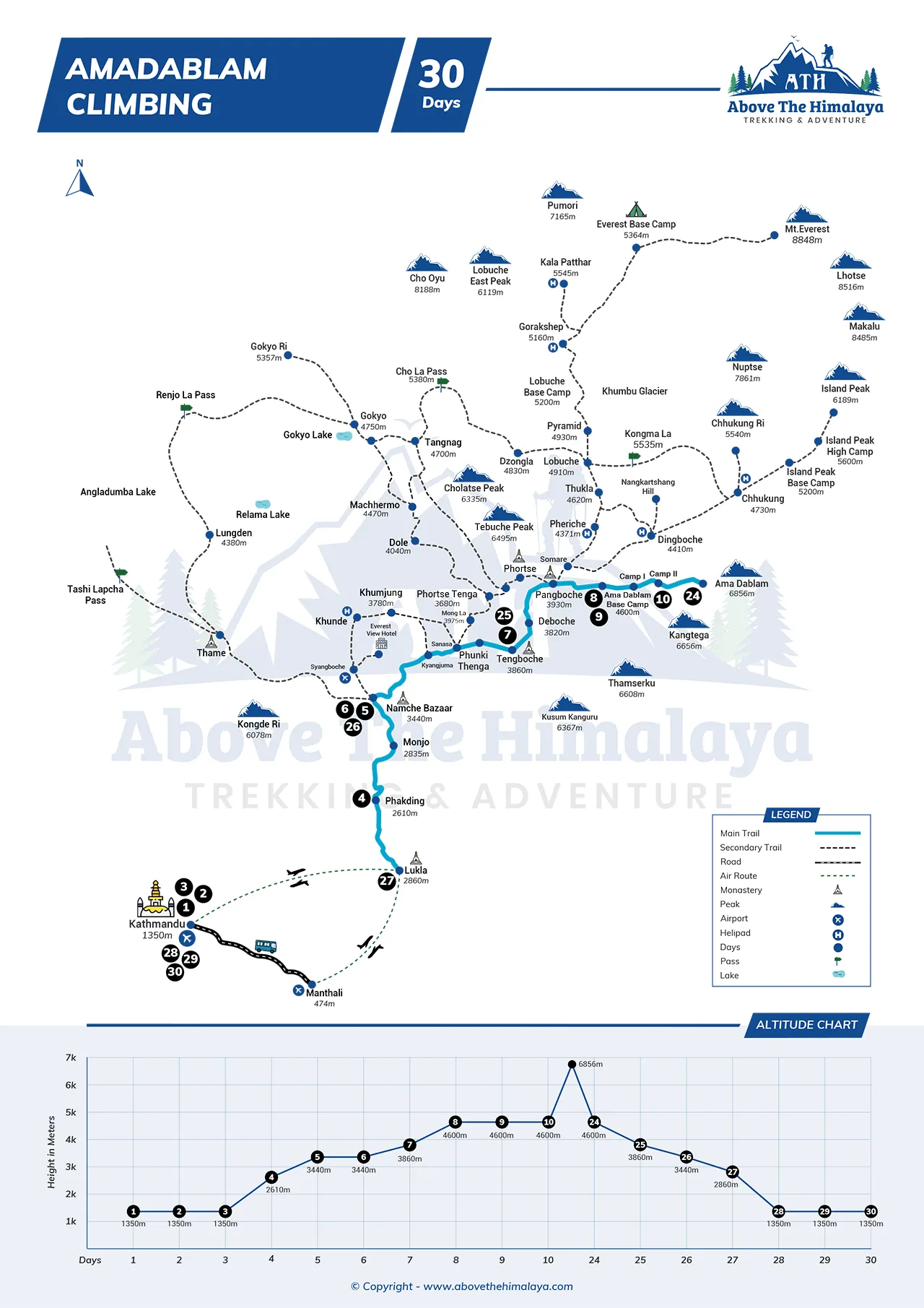 - Een unieke bergbeklimming van 's werelds meest prominente bergtoppen, Mt. AmaDablam (6,856 m/22,494 ft)