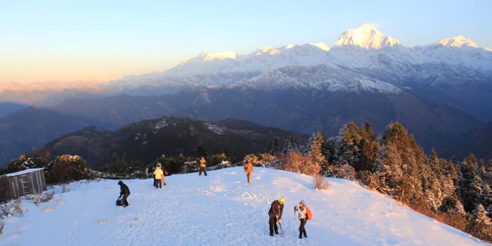 The trek is possible even in winter, between December and February. The nights are quite cold, and the temperature sometimes falls below 0 °C in Ghorepani. The trail can also have snowfall. Winter trekking may be very fun with warm clothes and the right preparations. Winter will have clear weather and fewer people.
